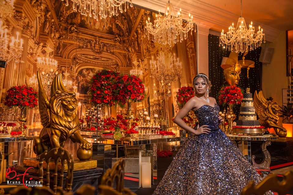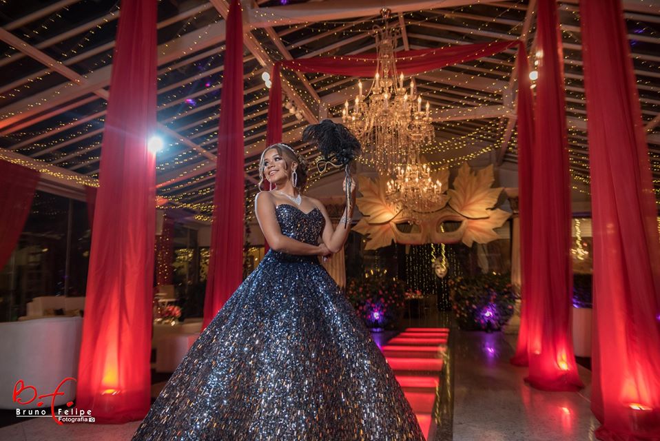 Para comemorar os seus 15 anos em grande estilo, nossa debutante Laysa preparou um incrível Baile de Máscaras que abalou as estruturas da casa de festas Mansão das Estrelas, no Rio de Janeiro. O evento contou com tudo o que não pode faltar em uma festa de 15 anos e mais um pouco – teve valsa, animação com personagens, apresentação de dança, e teve também a Laysa desfilando modelos maravilhosos do nosso ateliê! Confira, a seguir, cada look escolhido pela nossa debutante: