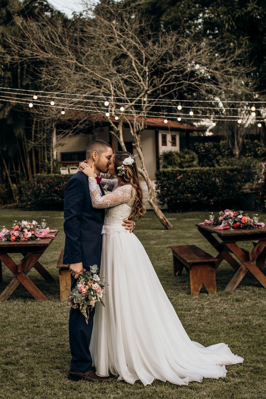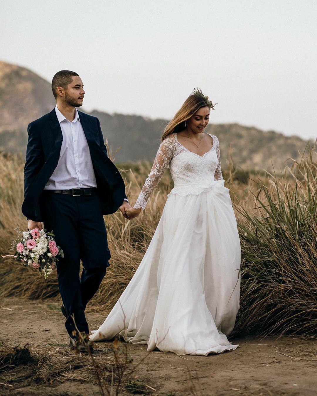 Para seu casamento no campo, nossa noiva Nathália vestiu um modelo princesa branco, com mangas longas de renda e saia plissada. A escolha da silhueta e da saia com volume provam que é possível apostar em um visual rústico sem perder o romantismo. Confira algumas fotos do ensaio pré-wedding do casal e veja como a Nathália ficou linda com esse look do Atelier Ivana Beaumond: