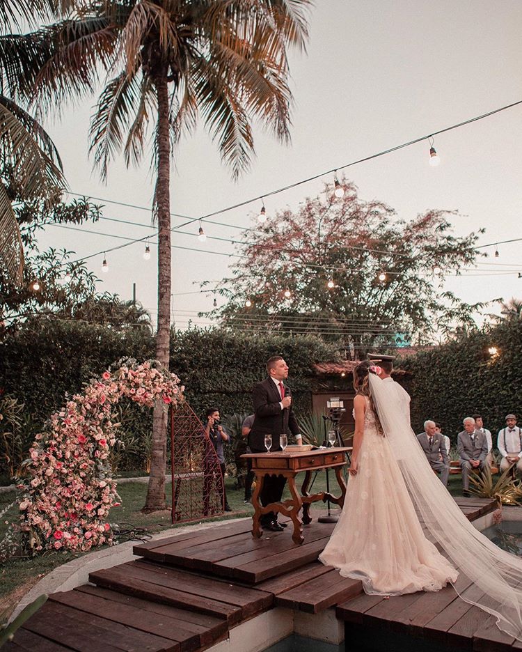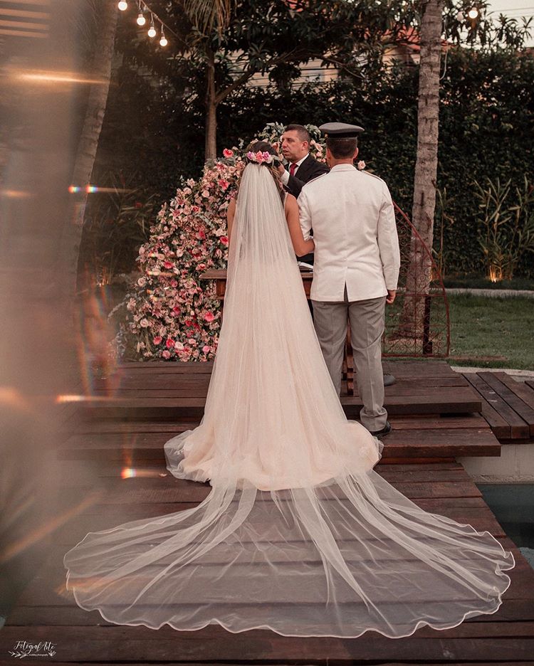 O casamento de Mayara e Thiago aconteceu na casa de festas Espaço Reservado, em Guaratiba, no Rio de Janeiro, e contou com uma belíssima cerimônia ao ar livre no fim da tarde. Para combinar com essa proposta rústica e sofisticada, nossa noiva Mayara escolheu um modelo evasê com decote em V com transparência. Veja como ela ficou linda nas fotos a seguir: