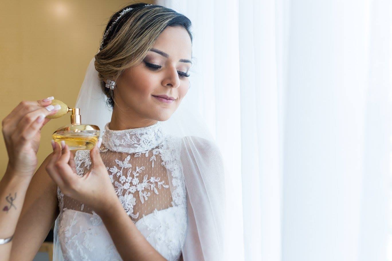 O casal Camyla e Luiz celebraram o amor, a união e a realização de um sonho, O casamento foi pensado e planejado com muito carinho para receber a todos os amigos e familiares, que estavam à espera de uma noiva linda e realizada! Para esse dia tão sonhado, Camyla esbanjou sorrisos e olhares para o vestido dos sonhos da nossa coleção Ivana Beaumond Paris. Aquele vestido ideal, que transmite muita beleza, modernidade e sofisticação. Todo aplicado em Renda de Arabescos, ele vem trazendo um corte Semi-Sereia, decote Canoa e nas costas, uma transparência de apaixonar, valorizando a silhueta da noiva e ao mesmo tempo, com um toque romântico e apaixonante. Essa joia de vestido, foi todo bordado à mão, com mix de materiais destacando ainda mais o desenho e beleza da renda. Complementando o look , o Véu e a Grinalda deram um toque especial ao penteado da noiva. Seu querido noivo Luiz também veste by Ivana Beaumond Paris.