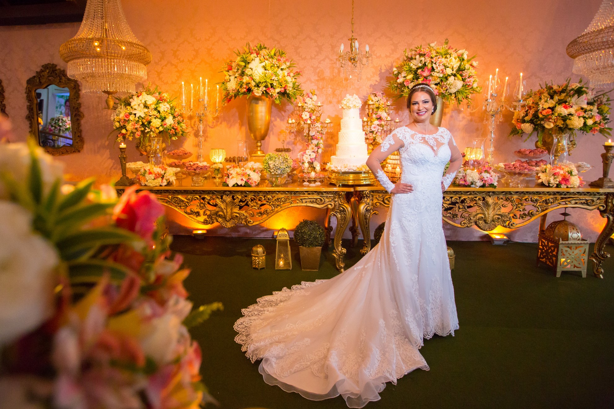 Surpresas boas são sempre bem-vindas, e a história de amor de Patrícia Verusca  e Fabio de Melo é marcada por muitas delas.  O Evento foi realizado no Espaço Zurique, onde foi escolhido a decoração com toque clássica e um background de flores naturais deixando o romantismo pelo ar. A Noiva escolheu um modelo com renda e transparência para o Casamento, incluindo mangas longas e um decote todo trabalhado. Tanto ela quanto o Noivo selecionaram IVANA BEAUMOND para cuidar dos looks para o Casamento. Além da, grinalda, roupa do Noivo, vestido da Mãe da Noiva, vestido da Mãe do Noivo, roupa do Pai da Noiva, vestido das Damas e roupa dos Pajens.