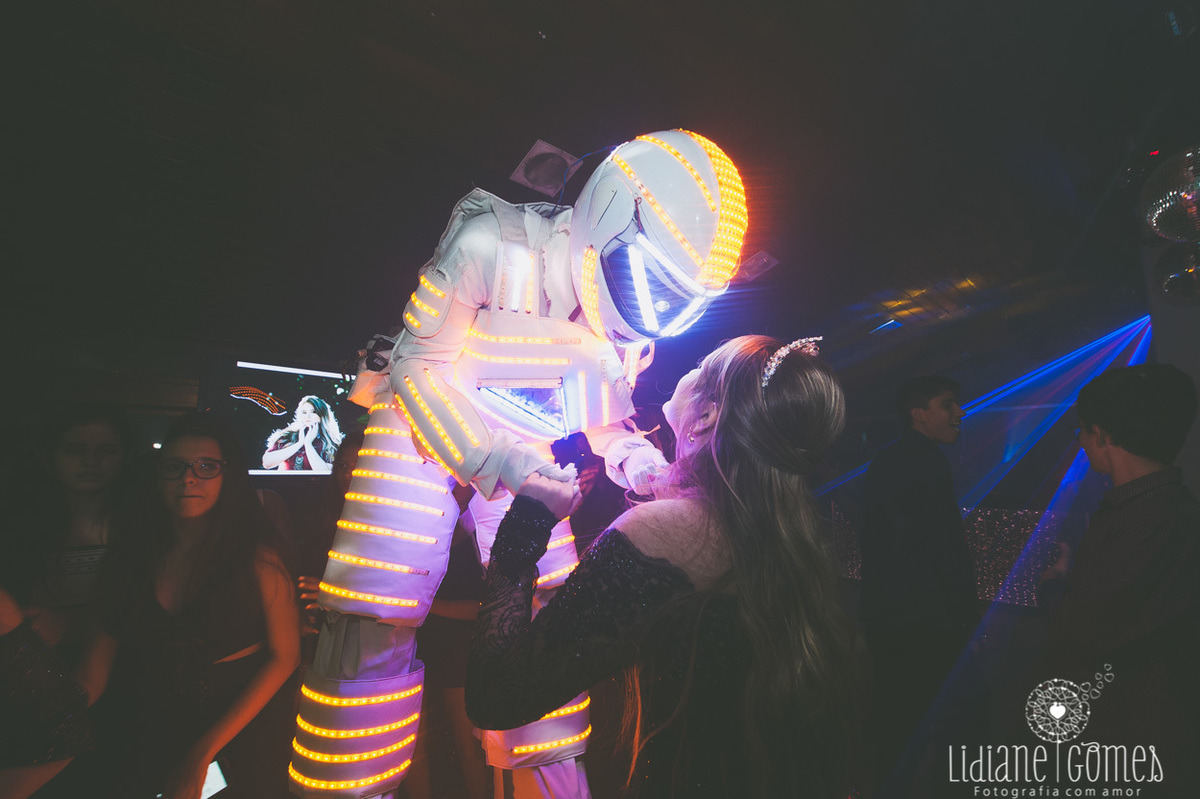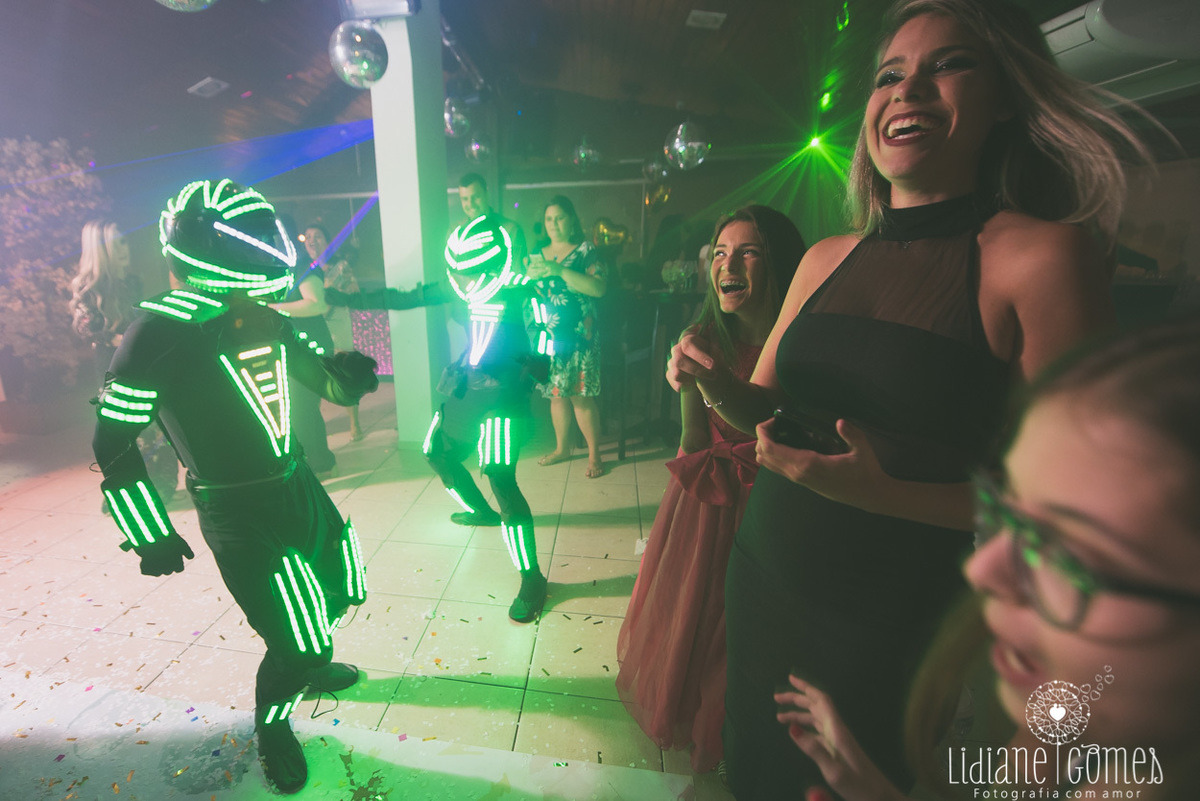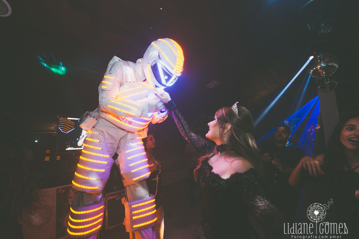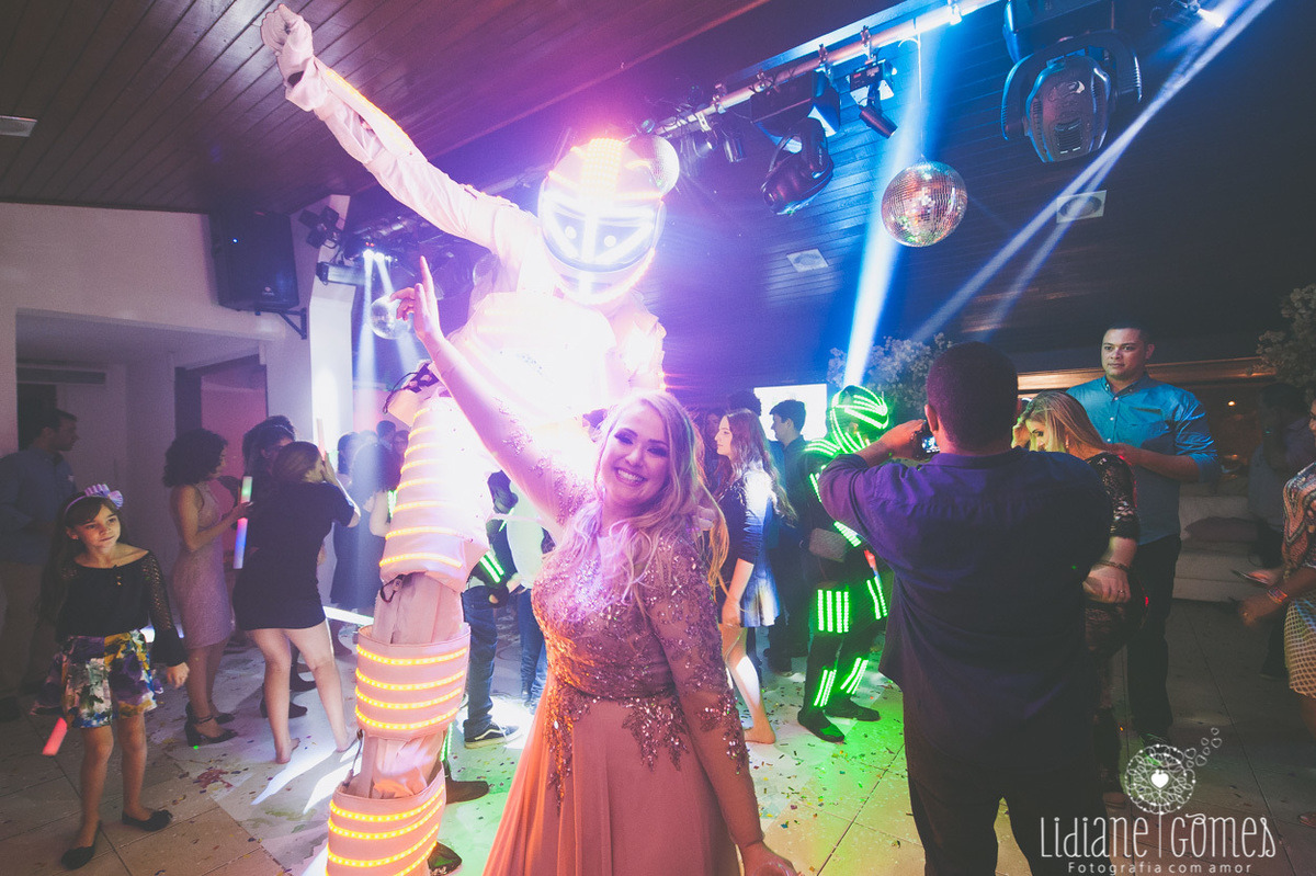 Vestidos: Ivana Beaumond Paris. Fotos: Lidiane Gomes Fotografia. Cabelo e Maquiagem: Flávia Alexandra. Cerimonial: Vanessa Quesada, com execução por Joel Joukin e Danilo Azevedo. Local da Festa: Reserva Eventos. Decoração: Vanessa Quesada e Renata Ramos. Gastronomia: Maria Luiza Buffet. Filmagem: NA Videos. Bolo Glacê Real Atelier. Doces: Tatiana Nunes Doces. Churros: Los Churritos. Brownies: Olenka Brownies. Bem Casados: Denise Cristina e Adriana Vieira. Atração: Dj Braga. Robôs de Led: MRB Produções. Porta guardanapos Personalizados: Cutting Laser.Identidade Visual: Papel a La Carte. Papelaria: Toca Serigráfica. Coreografia da Valsa: Gil Rangel. Coreografia da Abertura da Pista: Eddie Oficial. Som, Audiovisual e Iluminação: Dj Jean Nunes. Flores: Anderson Elias. Letreiro Luminoso: Rita Tilli. Sandálias: Smackbliss. Balões: Silas Balões. Cabine Fotográfica: Print a Pic.